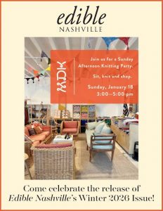 Home Winter 2026 Top StoriesWhere to Eat Valentines Day 2026Dozen Bakery Does it All!Black Bean Chili With Cocoa and CoffeeSunnyside Egg Company Is Starting a Regenerative RevolutionTurnip Truck Turns 25!How Tennessee Kitchen Gardens Helps With Gardening Support Local. Subscribe to get the Winter Issue. JANUARY IN NASHVILLE 3 Weeks of Healthy Menus Dry January: Smoothies, Waters and Mocktails Nashville’s Indie Coffee Map OUR PRINT ISSUES Winter 2026 Winter 2026 Fall 2025 Fall 2025 Summer 2025 Summer 2025 Spring 2025 Spring 2025 View All Digital Magazines Subscribe Where We're Eating, Winter 2026 By the Editors. Some old. Some new. All good. Featuring Kosho (right), All’Antico Vinaio, Savarino’s Market, Old Glory Distilling, Cafe Babu, Ladybird Taco, Van Leeuwen, Pinewood Social and more.READ MORE Where We’re Eating: Winter 2026 Healthy Living for 2026 12 Healthy Dishes for January 2026! Sage Refill MarketKilljoy Booze-Free Beverage ShopGrapefruit Coconut Water Mocktail7 Healthy Breakfasts from Granola to Eggs HOME & GARDEN Check out Our Green Fridge Turnip Truck Turns 25!9 Easy Ways to Go Green in the KitchenWhat to Put in Your CompostCompost Nashville JANUARY RECIPES How to Make Salted Caramel Sauce Avgolemono Soup with ChickenChicken ShawarmaSoy Sesame Marinated SalmonOlive Oil Lemon Almond Cake EVENTS WE LOVE Edible Winter Issue Release Party! Edible Winter Issue Release Party! Dry January Happy Hour with High Rise at Moto Chocolate & Magic at Durći Chocolate James Beard Foundation’s ‘Taste America’ Nashville Dinner (2/2) Explore More Events Have an Event? Click Here to Submit It FOOD NEWS Margot Café & Bar to Permanently Close in Summer 2026Thanksgiving in Nashville: Dine-In and Takeout Options (2025)The Antiques & Garden Show Returns to Nashville in January3 Nashville Restaurants Just Earned MICHELIN Stars in 202515+ Must-Visit Pumpkin Patches & Farms Near Nashville (2025)Bearded Iris Brewing to Close its Sylvan Park LocationMore News IN THE LATEST ISSUE Affogato: The Ultimate Coffee Dessert Dozen Bakery Does it All!Black Bean Chili With Cocoa and CoffeeSunnyside Egg Company Is Starting a Regenerative Revolution SIGN UP FOR OUR NEWSLETTER Email Send