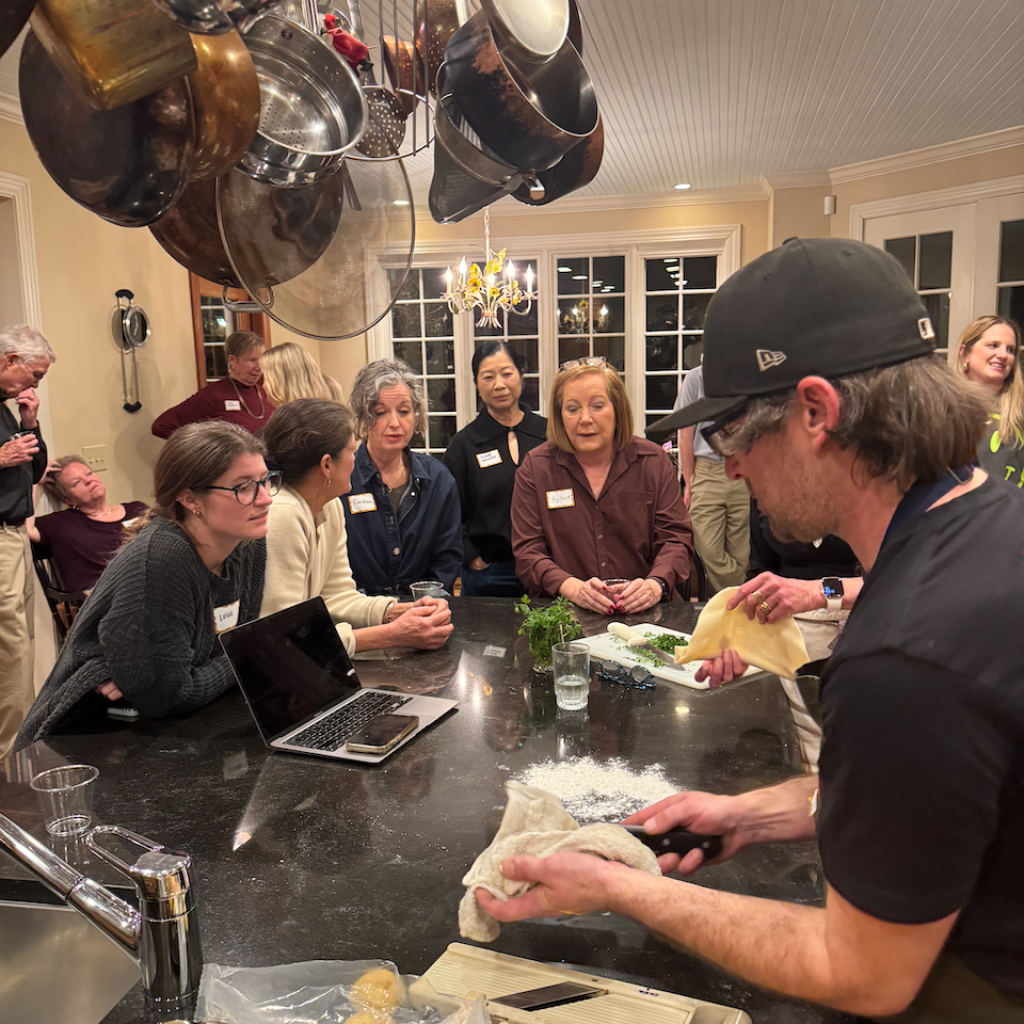 These peasant-inspired homey dishes of France are perfect for entertaining or just a cozy dinner at home. Chef Skylar Bush demonstrated these dishes at our French Cooking Class with USN Evening classes, which we’re honored to be a part of. The classes took place at the lovely home of Ann and Sykes Cargile. In Skylar Bush fashion he entertained the group with his no fuss skills and knowledge of bringing great food to the home cook.