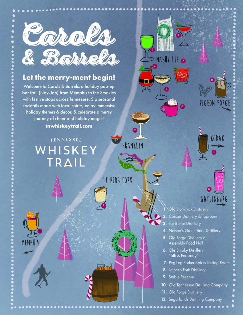 From our friends at The Tennessee Whiskey Trail is this festive holiday pop-up happening all across Tennessee, with a number of distilleries close to Nashville. Visit them for holiday cheer this year!