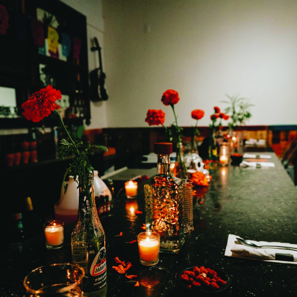 It’s Dia de los Muertos, and Memo’s Mexican Kitchen in Mount Juliet has invited its patrons to take a break from our culture of straight lines and right angles and enter for an evening into a celebration of circles, of connections of the past to the present and the living to the dead. Crossing the threshold from a strip mall into Memo’s, you enter a candlelit, almost otherworldly restaurant, complete with an ofrenda (or alter) with the faded pictures of departed loved ones set tenderly among the traditional yellow marigolds and burning candles. Owners Katie and Memo Murillo, their faces painted as skulls with foreheads bearing curvilinear designs to symbolize grace, create their own circles; Katie at the alter, inviting with her arms the spirits of the patron’s departed loved ones to dine with the living. And Memo at the stove in the kitchen, making large swings with his arms to stir the big pots of lentils and mole; the authentic dishes from his childhood that will soon be enjoyed by all.