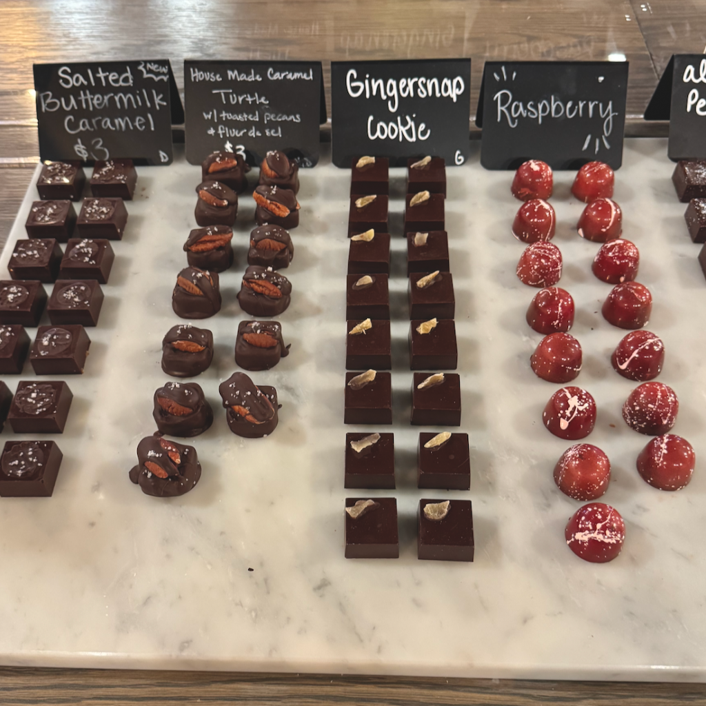 You can visit their store, buy chocolate, take a class or have lunch. You can also order chocolate online. Chocolate for Valentines? Check out their Chocolate Dinner 2/14/26 here.