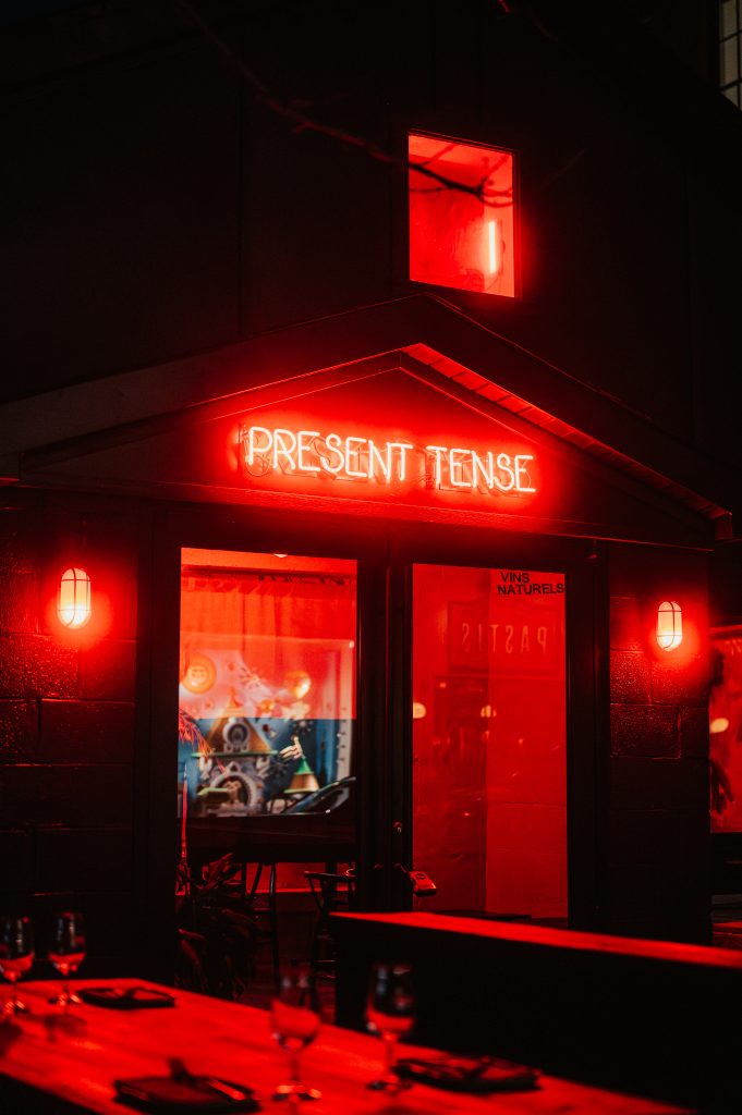 The menu also offers a list of creative cocktails and natural sakes, including junmai sakes and a pet nat nigori. The star of the cocktail list was the Botanist, a balanced and herbaceous gin sour. The meal concluded with a gently sweet matcha and kinako soft serve. Present Tense shares a building with Flamingo Cocktail Club, which makes it the perfect spot for dinner and drinks before a night of live music next door.