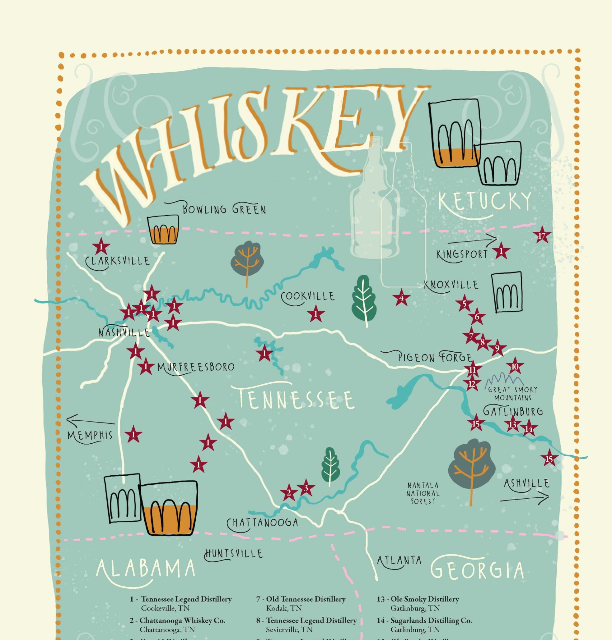 The Tennessee Whiskey trail goes from the mountains of east Tennessee to Memphis with more than 90 distilleries to explore. Here we focus on the distilleries in middle and east Tennessee. For more information go to the Tennessee whiskey Trail