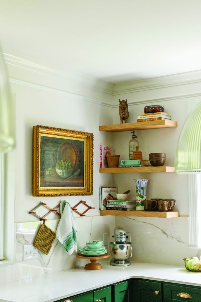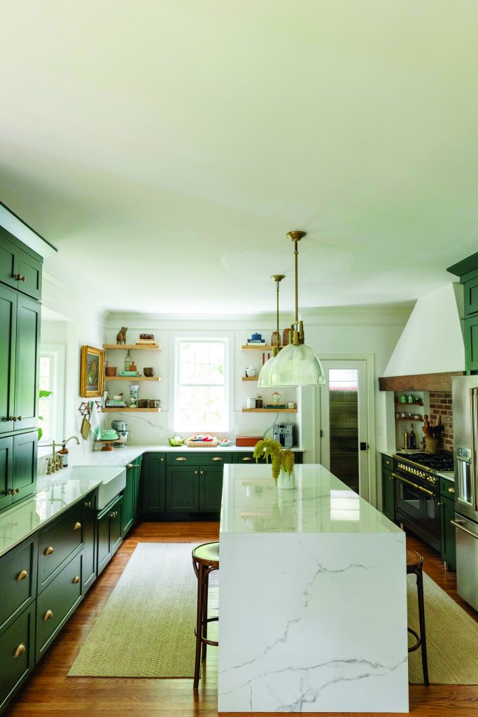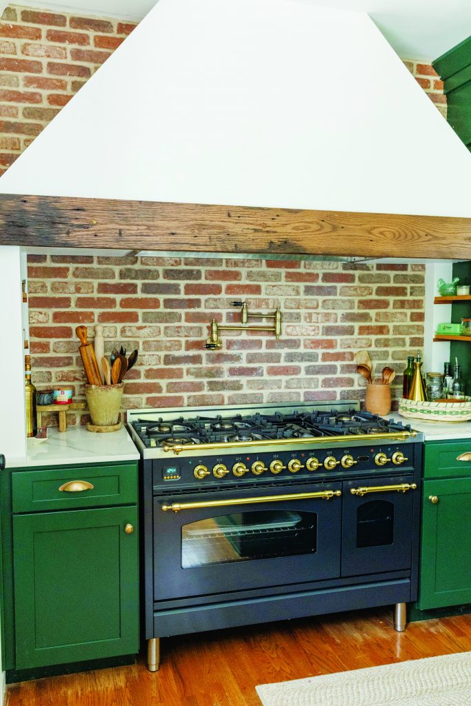 When Erin and Alfredo Malatesta renovated their ’90s home in the little enclave of Burwood in Thompsons Station, they chose green (specifically SW Roycroft Bottle Green). It’s Erin’s favorite color because it’s reminiscent of equestrian life and the Italian countryside. Both of which are important to the couple, on their homestead, replete with chickens and a substantial garden. The couple entertain and can vegetables, so the open design and large range are ideal.