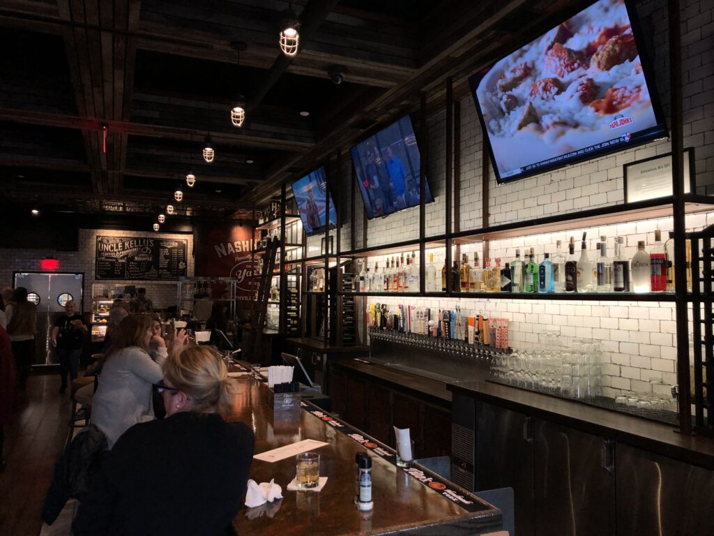 NashHouse Southern Spoon & Saloon is officially open! The latest venture of POP Hospitality Group (The Row, The Honeysuckle), NashHouse sits inside the Cambria Hotel. Serving what they call “New-South stlye cuisine,” (think BBQ, fried green tomatoes, burgers, catfish, hot chicken, shrimp & grits, etc.), the restaurant is making tastes of nashville readily available to guests of the hotel––and that stretches beyond the food! With local beer, live music, a commitment to playing all Titans and Predators games across their many big screens, and being just steps away from the Bridgestone Arena, Broadway, Music City Center, and Country Music Hall of Fame, we have to say it’s a great place to start for first-time visitors to Nashville. Visitors or locals looking for a new place to watch the game, whenever you drop in, be sure to order a slice of NashHouse pie and two spoons (it’s rich)!
