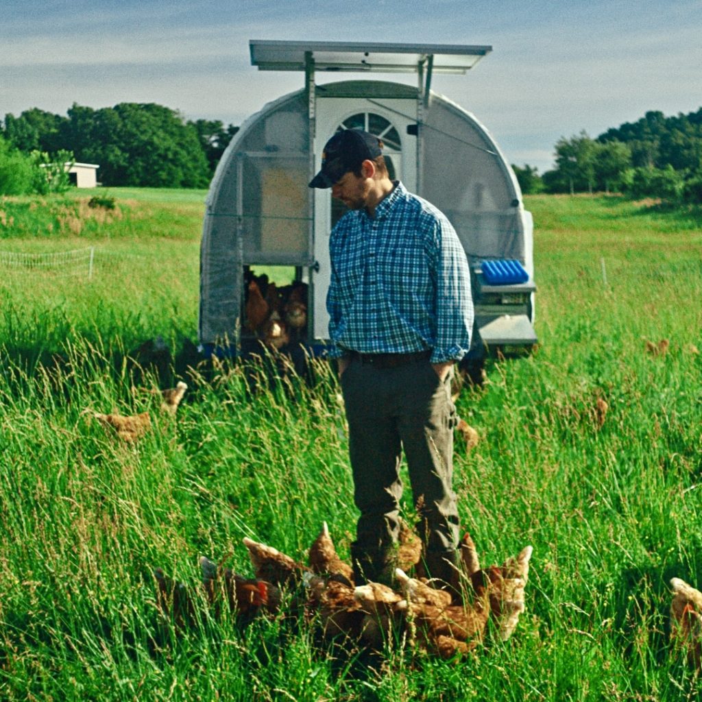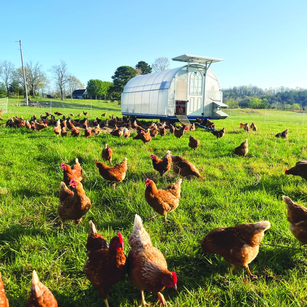 Today, Sunnyside partners with small farms across Kentucky and Tennessee. A typical Sunnyside farm manages approximately 3,000 hens—far fewer than the massive commercial flocks, which often concentrate tens of thousands of birds on a single site. The company provides its partner farms with mobile coop designs, thorough onboarding and training and routine oversight. “There’s no one-size-fits-all in regenerative farming,” Patrick says. “Every coop, every farm, every community looks a little different, but our strict standards around breed, feed and housing ensure consistency across all of our farms.”
