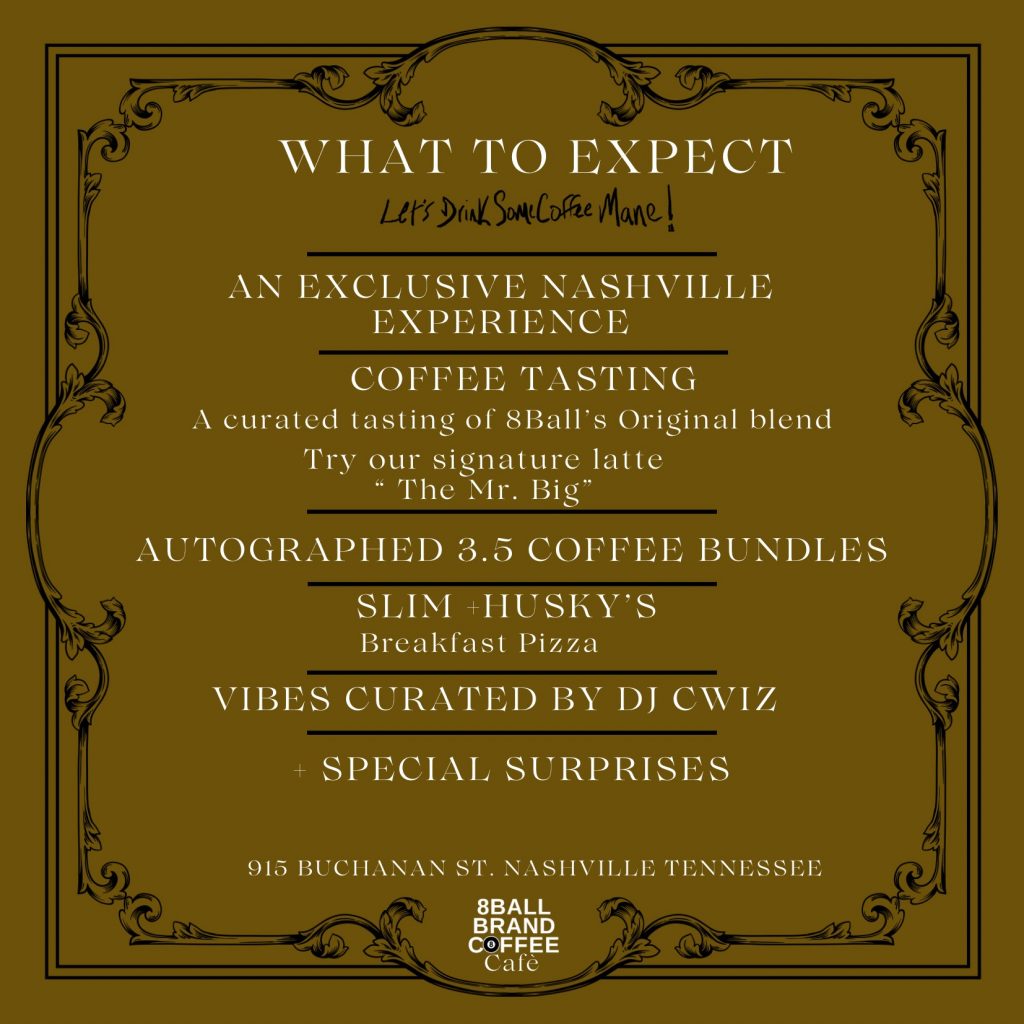 Guests can expect a curated tasting of 8Ball Brand Coffee’s Original Blend, including the brand’s signature latte, “The Mr. Big.” In addition, a limited number of Autographed 3.5 coffee bundles will be available on site, making this a must-attend moment for coffee lovers and culture enthusiasts alike.