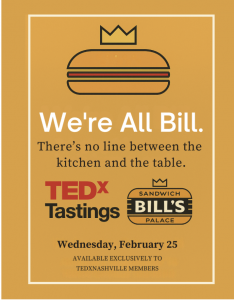 “We’re All Bill.” A TEDxNashville Tastings Experience at Bill’s Sandwich Palace 2/25