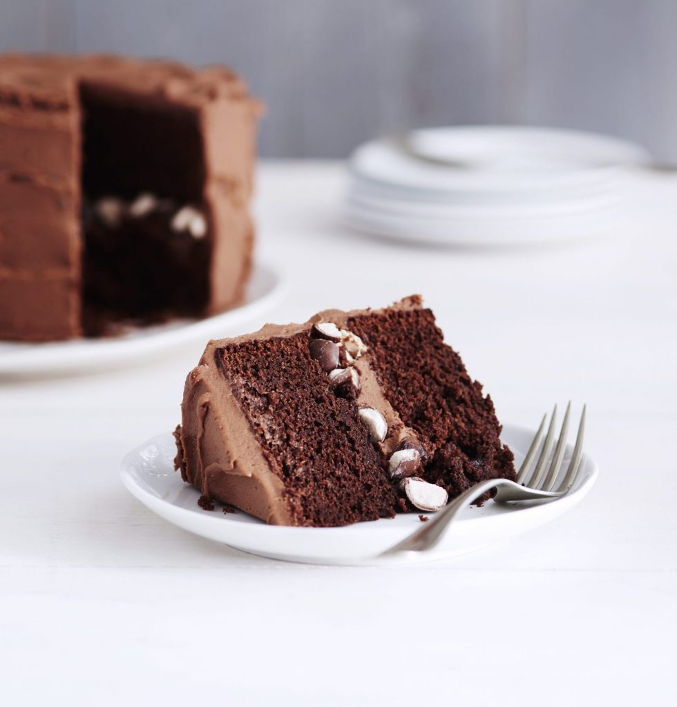 A lil chocolate malt cake for 4 from the cookbook Little Everyday Cakes by Nashvillian Candace Floyd. Kids will love the buried malted milk balls and adults will love the deep flavor.
