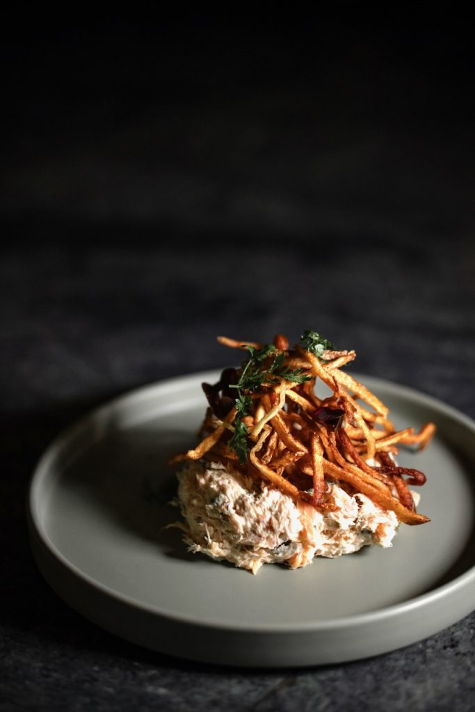 Local Bucksnort trout was smoked and mixed with cream cheese, sour cream and spices for a luxurious dip. Chefs topped it with a “haystack” of shoestring potatoes to celebrate Monet’s iconic canvas in the nearby gallery.