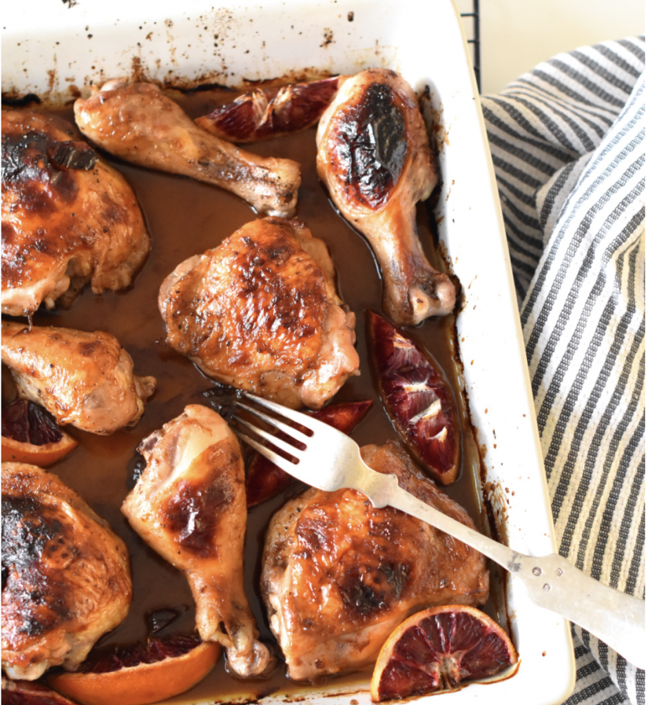 We love this bright chicken recipe from contributor, Teresa Blackburn. Serve pieces of chicken with some of the pan juices & roasted citrus, a crusty baguette for soppin’ and a simple arugula salad.